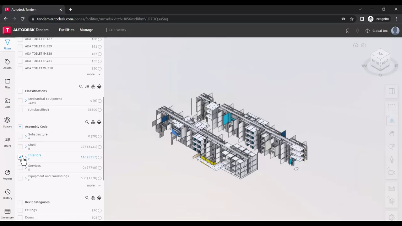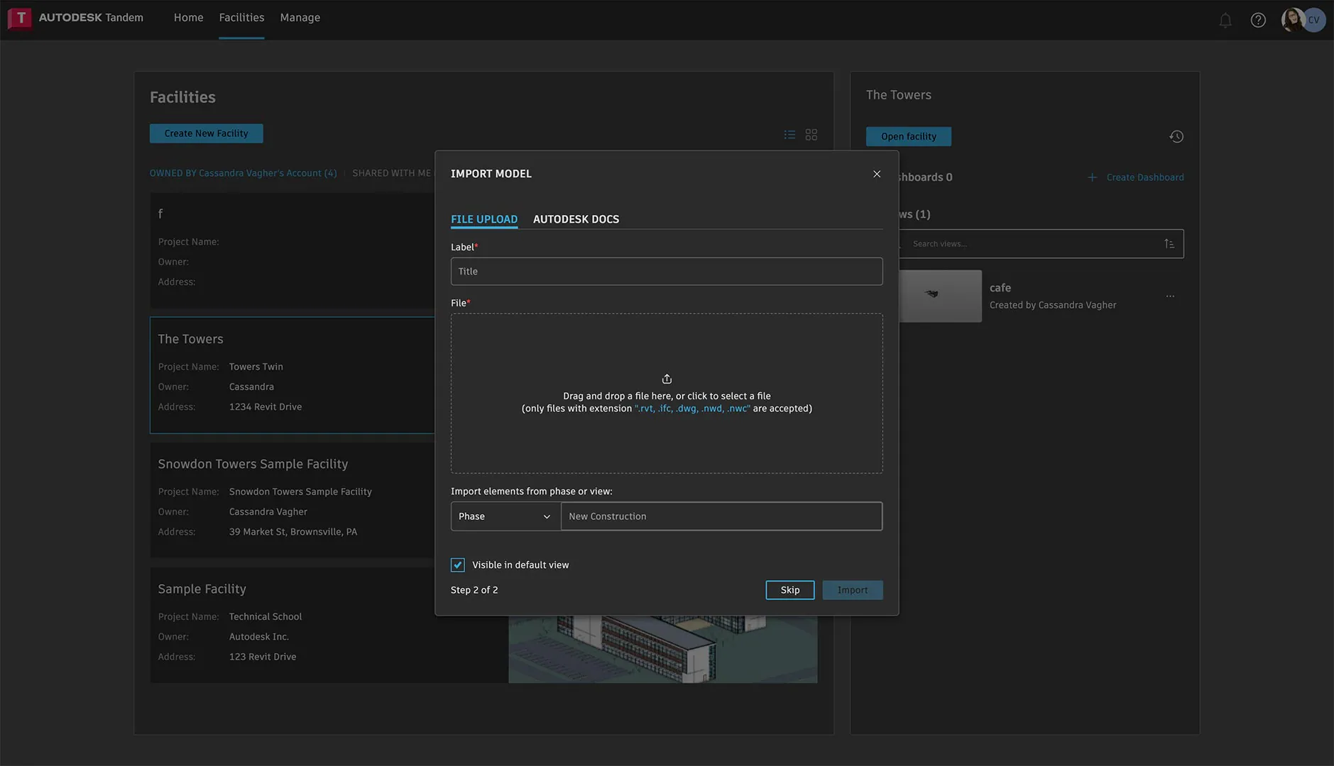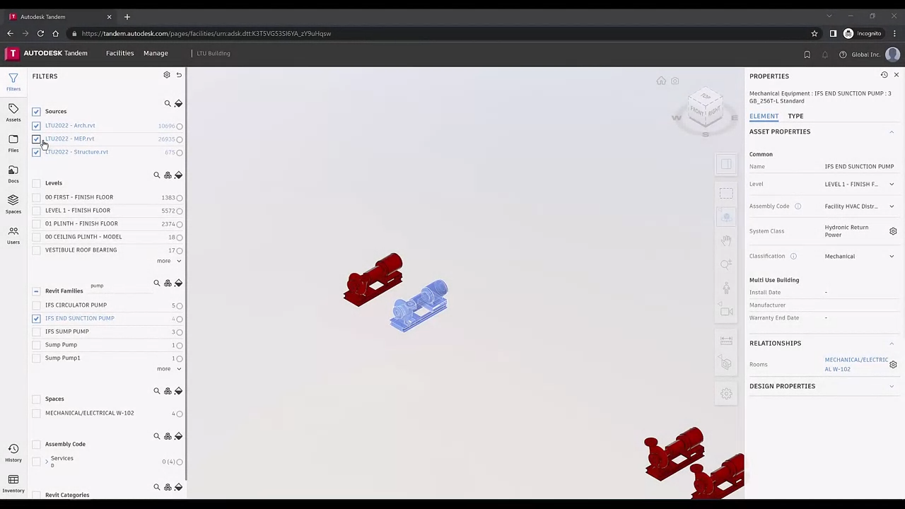 Localize o projeto com dados do Autodesk Docs por meio da integração com o Tandem for AEC ou importe manualmente modelos IFC e Revit.