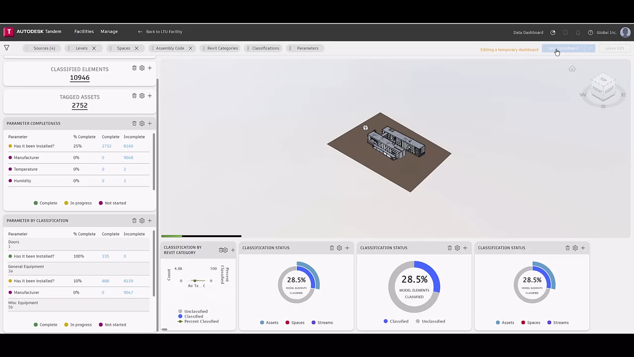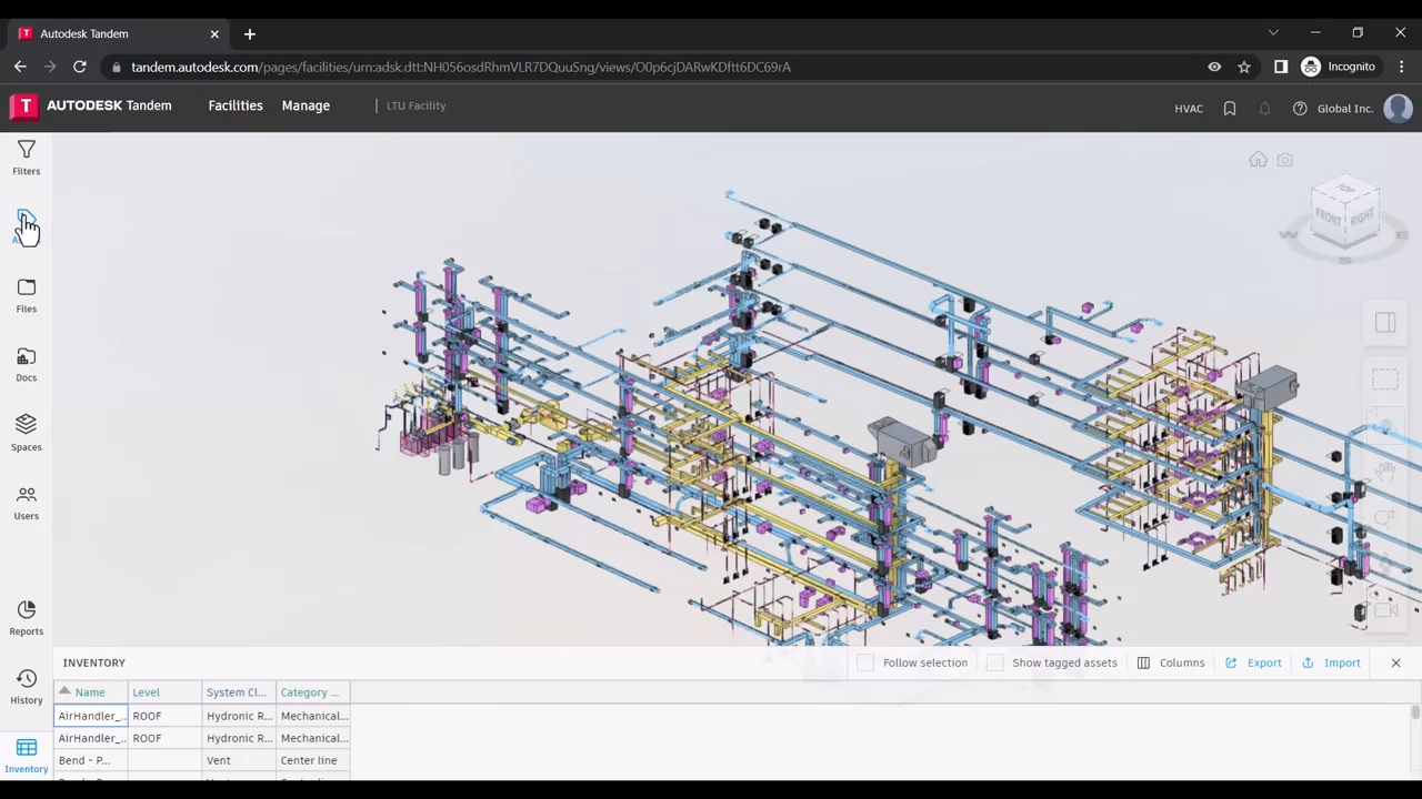Quando o gêmeo digital estiver completo, o Autodesk Tandem permitirá a transferência do gêmeo para o proprietário da instalação.