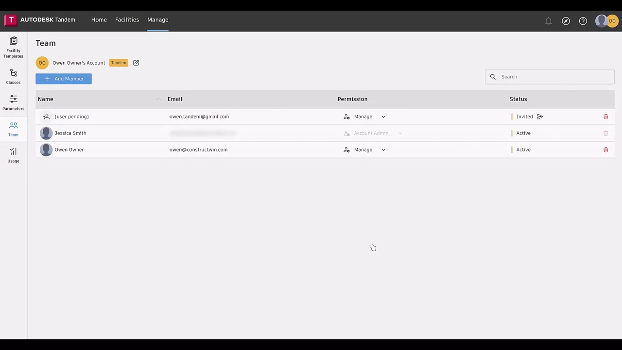Os administradores podem gerenciar os membros da equipe e os níveis de permissões e acompanhar o uso do Tandem em toda a organização.